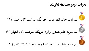 سومین شب هفتمین جشنواره بازیهای بومی و محلی در تاریخ 1404/08/13 در خوابگاه دختران طرشت 2 با شرکت 66 نفر در رشته دارت و 54 نفر در رشته طنابکشی در قالب 9 تیم 6 نفره برگزار و به نفرات برتر رشته دارت حکم قهرمانی و پک اقلام ورزشی و تیمهای اول تا سوم رشته طنابکشی حکم قهرمانی و کارت هدیه اهدا شد.