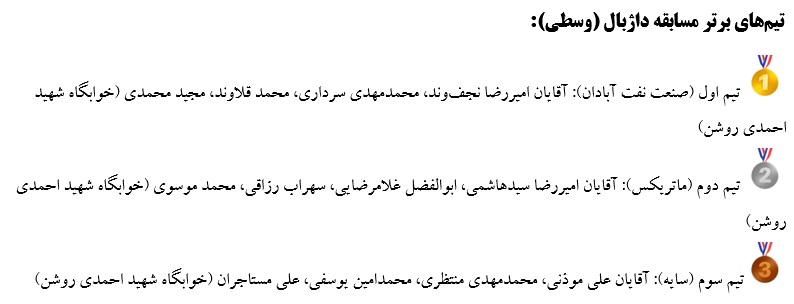 دومین شب هفتمین جشنواره بازیهای بومی و محلی در تاریخ 1404/08/19 در خوابگاه پسران شهید احمدی روشن با شرکت 28 نفر در رشته طنابزنی و 56 نفر در رشته داژبال (وسطی) در قالب 14 تیم 4 نفره برگزار و به نفرات برتر رشته طنابزنی حکم قهرمانی و پک اقلام ورزشی و تیمهای اول تا سوم رشته داژبال (وسطی) حکم قهرمانی و کارت هدیه اهدا شد.